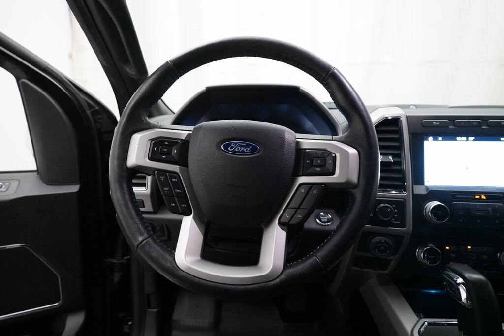 4WD, 110V/400W Outlet, 18" Machined-Aluminum Wheels, 2-Bar Body-Color Grille w/4 Minor Bars, 2nd Row Heated Seats, 4-Wheel Disc Brakes, 7 Speakers, ABS Brakes, Accent-Color Angular Step Bars, Active Park Assist, Adjustable pedals, Air Conditioning, Alloy wheels, AM/FM Radio, Available Sirius XM Radio, AppLink/Apple CarPlay and Android Auto, Auto High-beam Headlights, Auto-dimming door mirrors, Auto-dimming Rear-View mirror, Automatic temperature control, Available Sirius XM Radio, BLIS Blind Spot Information System, Body-Color Front & Rear Bumpers, Box Side Decals, Brake Assist, Bumpers: chrome, Chrome 2-Bar Grille w/4 Minor Bars, Chrome Angular Step Bars, Chrome Door & Tailgate Handles w/Body-Color Bezel, Chrome Skull Caps on Exterior Mirrors, Class IV Trailer Hitch Receiver, Compass, Delay-off headlights, Driver door bin, Driver vanity mirror, Dual front impact airbags, Dual front side impact airbags, Dual-Climate Control, Electronic Stability Control, Emergency communication system: SYNC 3 911 Assist, Engine Oil Cooler, Equipment Group 502A Luxury, Extended Range 36 Gallon Fuel Tank, Front anti-roll bar, Front Center Armrest w/Storage, Front Fog Lights, Front reading lights, Front wheel independent suspension, Fully Automatic Headlights, GVWR: 7,050 lbs Payload Package, Heated Front Seats, Heated Sideview Mirrors, Heated Steering Wheel, Illuminated Entry, Integrated Trailer Brake Controller, Lane-Keeping System, Lariat Chrome Appearance Package, Lariat Sport Appearance Package, Leather-Trimmed 40/20/40 Front Seat, Leather-Trimmed Bucket Seats, LED Sideview Mirror Spotlights, Low Tire Pressure Warning, Max Trailer Tow Package, Memory seat, Occupant sensing airbag, Outside Temperature Display, Overhead airbag, Overhead Console, Panic alarm, Passenger door bin, Passenger vanity mirror, Pedal memory, Power Adjusting Driver Seat, Power Glass Sideview Mirr w/Body-Color Skull Caps, Power passenger seat, Power Sideview Mirrors, Power Steering, Power Tilt/Telescoping Steering Column w/Memory, Power Windows, Pro Trailer Backup Assist, Quad Beam LED Headlamps & LED Taillamps/Fog Lamps, Radio data system, Radio: AM/FM Stereo w/6 Speakers, Radio: B&O Sound System by Bang & Olufsen, Rain-Sensing Wipers, Rear reading lights, Rear seat center armrest, Rear Step Bumper, Rear-View Camera, Rear/Front Window Defroster, Remote keyless entry, Remote Start System w/Remote Tailgate Release, Reverse Sensing System, Security system, Single-Tip Chrome Exhaust, Speed Control, Speed-sensing steering, Split Folding Rear Seat, Steering Wheel Mounted Audio Controls, SYNC 3, Tachometer, Technology Package, Telescoping steering wheel, Tilt steering wheel, Traction Control, Tray Style Floor Liner, Trip computer, Turn signal indicator mirrors, Universal Garage Door Opener, Upgraded Front Stabilizer Bar, Variably intermittent wipers, Ventilated Front Seats, Voice-Activated Touchscreen Navigation, Voltmeter, Wheels: 18" 6-Spoke Machined-Aluminum, Wheels: 18" Chrome-Like PVD, Wheels: 20" 6-Spoke Premium Painted Aluminum, Windshield Wiper De-Icer, 4WD.