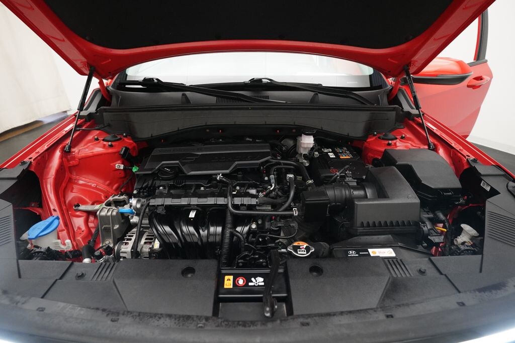 4-Wheel Disc Brakes, 6 Speakers, ABS Brakes, Air Conditioning, Alloy wheels, AM/FM Radio, Available Sirius XM Radio, Apple CarPlay & Android Auto, Auto High-beam Headlights, Automatic temperature control, Brake Assist, Bumpers: body-color, Cloth Seat Trim, Delay-off headlights, Driver door bin, Driver vanity mirror, Dual front impact airbags, Dual front side impact airbags, Dual-Climate Control, Electronic Stability Control, Emergency communication system: Bluelink+, Four wheel independent suspension, Front anti-roll bar, Front Bucket Seats, Front Center Armrest, Front reading lights, Fully Automatic Headlights, Heated Sideview Mirrors, Illuminated Entry, Leather Steering Wheel, Low Tire Pressure Warning, Occupant sensing airbag, Option Group 01, Outside Temperature Display, Overhead airbag, Panic alarm, Passenger door bin, Passenger vanity mirror, Power Adjusting Driver Seat, Power Sideview Mirrors, Power Steering, Power Windows, Radio: AM/FM/HD Radio/SiriusXM Audio System, Rear anti-roll bar, Rear seat center armrest, Rear Spoiler, Rear Window Wiper, Rear-View Camera, Rear/Front Window Defroster, Remote keyless entry, Security system, Speed Control, Speed-sensing steering, Split Folding Rear Seat, Steering Wheel Mounted Audio Controls, Tachometer, Telescoping steering wheel, Tilt steering wheel, Traction Control, Trip computer, Turn signal indicator mirrors, Variably intermittent wipers, Wheels: 18" x 7.0J Glossy Black Alloy.